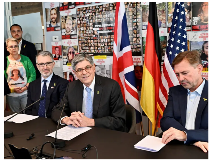 In einer gemeinsamen Pressekonferenz der Botschafter der USA, Grossbritanniens und Deutschlands erklärten die Diplomaten, «dass Israel und die Hamas bald zu einem Waffenstillstandsabkommen im Gazastreifen kommen müssen, da es möglicherweise keine anderen Möglichkeiten gibt, die Freiheit der seit dem 7. Oktober in der palästinensischen Enklave festgehaltenen Geiseln zu erlangen.» Die Pressekonferenz fand am Sitz des ‘Forums der Geiseln’ in Tel Aviv statt. Der deutsche Botschafter Steffen Seibert, jishar koach, der nach nur zwei Jahren in Israel nahezu perfekt Hebräisch spricht, sagte: «Diese Woche ist potenziell entscheidend für das Schicksal der Geiseln. Die Augen von Millionen Menschen sind auf die morgigen Gespräche gerichtet.» Er wendet sich an die anwesenden Familienangehörigen und fährt fort: «Die Erfahrungen und das Leid der Familien sind unerträglich. Ich fordere alle Parteien, einschliesslich des Irans auf, von Aktionen abzusehen, die die Gespräche gefährden könnten.»