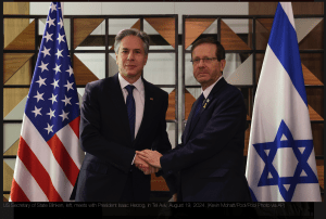 Präsident Herzog betont in seinem Gespräch mit US-Aussenminister Blinken, dass die Hamas für das erneute Scheitern des Geiselabkommens verantwortlich ist. «Die Menschen müssen verstehen, dass es an der Weigerung der Hamas liegt, dass wir uns nicht vorwärtsbewegen», so Herzog. «Wir sind einfach immer noch sehr zuversichtlich, dass wir in den Verhandlungen, die von den Vermittlern geführt werden, vorankommen können.» Es gibt, so betonte Herzog, kein grösseres humanitäres Ziel, als die Geiseln nach Hause zu holen und dankte den USA, Katar und Ägypten für ihre unablässigen Bemühungen. «Sie haben eine sehr mächtige und beeindruckende Koalition von Armeen und Seestreitkräften zusammengestellt, die hier sind, um die Interessen der Koalition der Nationen zu schützen, die sich für Frieden und eine bessere Zukunft im Nahen Osten einsetzen wollen, gegen das Reich des Bösen, das von Teheran ausgeht.» Blinken wies aber auch darauf hin, dass die aktuellen Verhandlungen vielleicht die beste, aber ziemlich sicher auch die letzte Chance für einen Erfolg bei der Freilassung der Geiseln sei. Das gelte auch für einen Waffenstillstand, der der Beginn eines dauerhaften Friedens und mehr Sicherheit sei.