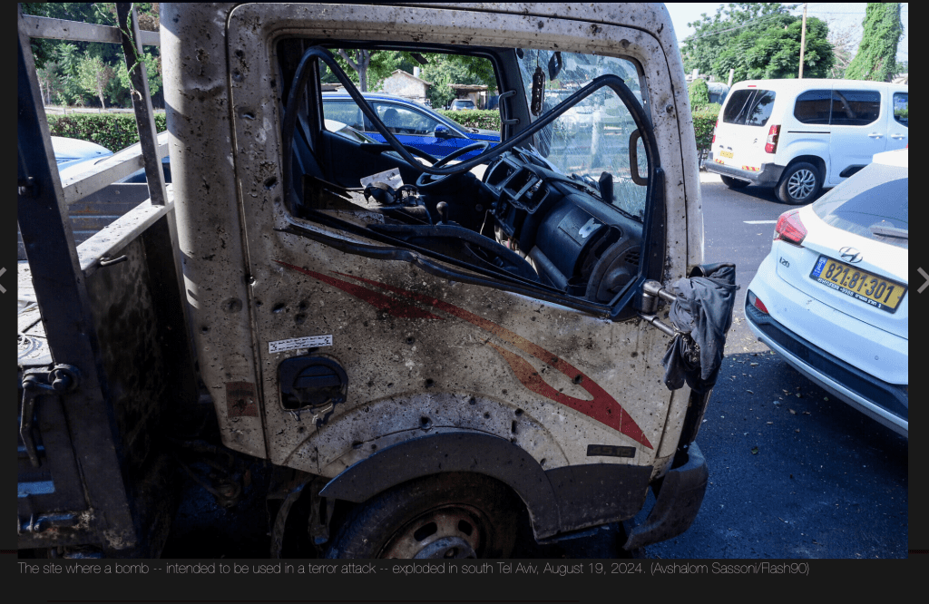 Ein geplanter Terror-Angriff im Zentrum von Tel-Aviv endete gestern Abend mit einer frühzeitigen Explosion einer Rucksackbombe. Der Terrorist verlor durch die Explosion, die umfangreichen Sachschaden anrichtete, sein Leben. Ein unbeteiligter Mann wurde leicht verletzt. Es wird vermutet, dass der Terrorist ein Palästinenser aus dem Gebiet von Judäa und Samaria war. Die Hamas hat mittlerweile die Verantwortung für den versuchten Terror-Anschlag übernommen und zugesichert, weitere auszuführen. Die fanatischen Hamas nannten den Terror-Anschlag eine «Märtyrertum-Operation»
