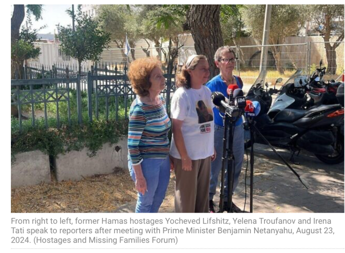 Andere ehemalige Geiseln hatten weniger Bedenken und eilten zu ihrem Treffen mit Netanyahu. Nach dem Treffen betonten sie gegenüber Journalisten, dass Netanyahu versprochen habe, alles in seiner Macht Stehende zu tun, um die noch in Gaza befindlichen Geiseln zu befreien. Yelena Troufanov gibt sich hoffnungsfroh: