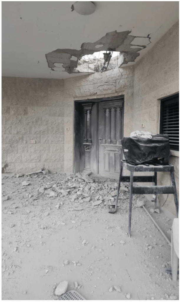 Ebenfalls in Akko wurde ein Haus durch einen direkten Treffer stark beschädigt. Die Familie konnte sich retten, indem sie in einem grossen Schrankraum Zuflucht suchte.