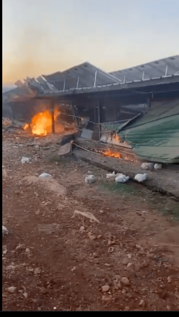 In Manot wurde eine Hühnerfarm direkt getroffen und brannte völlig aus. In Israel herrscht bereits seit einiger Zeit ein Mangel an Eiern, nachdem wichtige Hühnerfarmen im Norden des Landes Opfer der Angriffe der Hisbollah wurden.