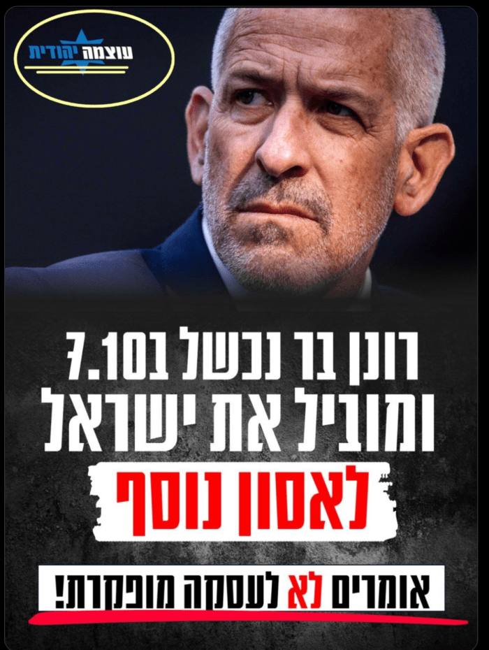 Die rechtsextreme Partei ‘Otzma Yehudit’ unter der Führung des rechtsextrem-nationalistischen Ben-Gvir hat eine bezahlte Anzeige geschaltet. Vor dem Kopf vom Chef des Shin Bet, Ronen Bar, steht zu lesen: «Ronen Bar hat am 7. Oktober versagt und führt Israel in eine weitere Katastrophe. Sagen Sie Nein zu einem rücksichtslosen Deal.» Oppositionsführer Yair Lapid antwortete prompt: «Nur ein labiler Clown wie Ben Gvir ist in der Lage, mitten im Krieg, während die Bewohner des Nordens in Schutzräumen sind und Soldaten getötet werden, eine bezahlte Anzeige gegen den Chef des Shin Bet zu veröffentlichen, einen Patrioten und echten Kämpfer, wie es Ben Gvir nicht war und nie sein wird.»