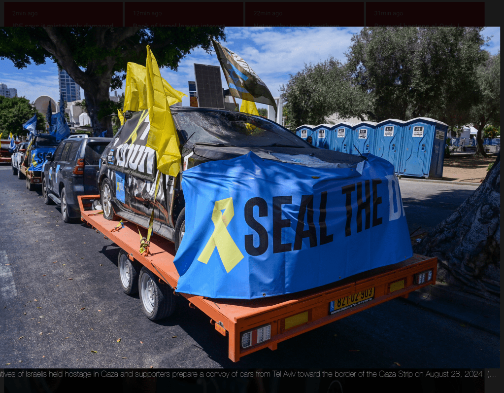 Vor der Abfahrt vom ‘Platz der Geiseln’ in Tel Aviv kam u.a. die Mutter von Shiri Albag, einer Soldatin der Einheit 8.200 zu Wort: «Wo seid ihr, Mitglieder der Regierung? Wo seid ihr, gewählte Vertreter? Was in die Geschichtsbücher dieses verfluchten Krieges eingehen wird, ist nicht, ob wir den Philadelphi-Korridor erobert haben oder wie viele Terroristen wir getötet haben, sondern ob wir uns um unsere Geiseln gekümmert und sie nach Hause gebracht haben.»