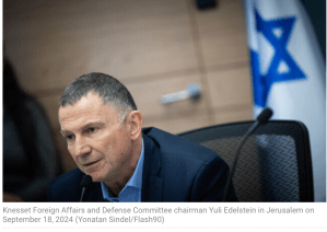 Yuli Edelstein, Likud, äussert sich in ungerechtfertigt harscher Kritik gegen die Familienangehörigen und Freunde der Geiseln, die sich noch in den Fängen der palästinensischen Terror-Organisation Hamas in Gaza befinden. «Niemand kann den Familien Vorwürfe machen, aber ich vergebe den Menschen nicht, die die Geiseln für Ziele missbrauchen, die nichts mit ihnen zu tun haben. Niemand sagt den Familien, was sie tun sollen und niemand predigt ihnen Moral.» Edelstein war zwischen 1984 und 1987 wegen angeblichen Drogenbesitz in einem Arbeitslager in der UdSSR inhaftiert, bevor er freigelassen wurde und nach Israel auswandern durfte. Warum er, der bis zu einer Ankunft in Israel völlig unpolitische und auch säkulare Jude den Ehrentitel ‘Prisoner of Zion’ erhält, ist mir unklar.[1]
