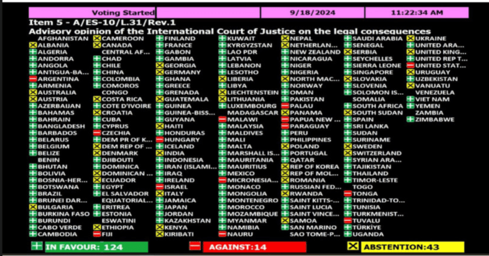 Ein Nachtrag zu gestern. Die Abstimmung der UN-Vollversammlung zum Thema Waffenembargo gegen Israel, Entzug des Rechts der Selbstverteidigung und völliger Abzug der IDF aus Gaza, sowie Judäa und Samaria, endete mit einem katastrophalen Ergebnis. 124 Staaten stimmten für den Antrag, zwölf dagegen und 43 enthielten sich.