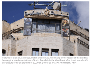 Hamas-Politbüromitglied Izzat al-Rishq verurteilte die Entscheidung Israels, die Büros von al-Jazeera in Ramallah, Samaria, zu schliessen. Diese Schliessung sei eine «Verletzung der Pressefreiheit … Vergeltung für Al Jazeeras professionelle Rolle bei der Aufdeckung der Verbrechen der Besatzung, sowie der Versuch, die Aktionen des Widerstands in Gaza und die Angriffe der Hisbollah auf Militärstützpunkte tief im israelischen Territorium zu vertuschen.» Es ist seit Langem bekannt, dass die Verbindung zwischen al-Jazeera und der Hamas sehr eng ist und dass einige Reporter sogar an Terror-Anschlägen gegen Israel teilgenommen haben. Die Schliessung erfolgt zunächst für 45 Tage.
