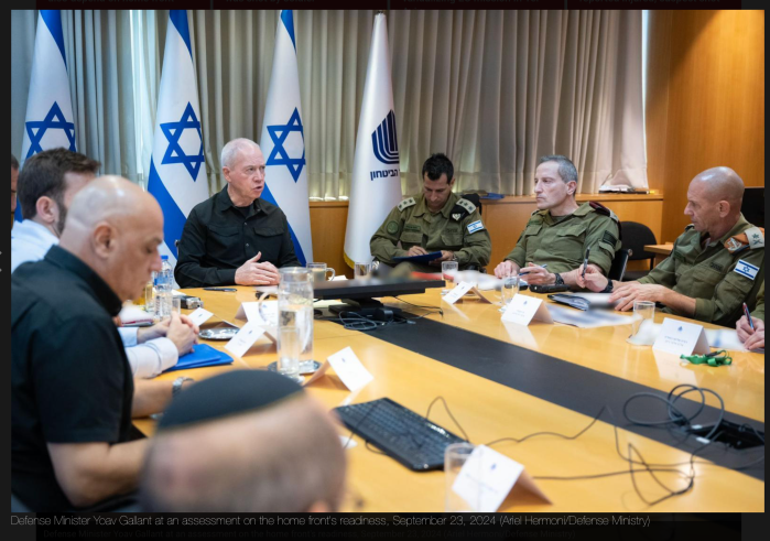 VM Yoav Gallant betonte anlässlich einer Sitzung mit dem ‘Home Front Command’, dass der Erfolg der IDF in dieser neuen Phase auch vom Verhalten der israelischen Bevölkerung abhängt. «Wir verstärken unsere Angriffe im Libanon, die Abfolge der Operationen geht weiter und wird so lange fortgesetzt, bis wir unser Ziel erreicht haben, die Bewohner des Nordens sicher in ihre Häuser zurückzubringen», sagte er und fuhr fort: «Der Unterschied zwischen Erfolg und Misserfolg wird davon abhängen, ob die Bürger die geschützten Räume und andere Bereiche gemäss den Anweisungen, die wir ihnen gegeben haben, betreten. Das rettet Leben.»