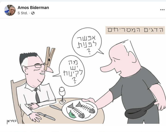Amos Biderman beschreibt die Wankelmütigkeit von Netanyahu und Sa’ar sehr treffend. Bitte drauf achten: statt der seit Monaten obligatorischen Schutzweste trägt er jetzt Freizeitkleidung, er ist in Gedanken schon in New York!
