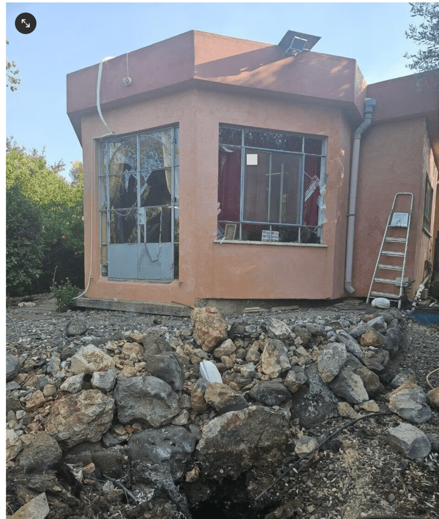 Auch im Kibbutz Sa’ar, nördlich von Nahariya wurde ein Haus von einer Rakete getroffen. Zwei Kibbutzniks liefen in Richtung des Schutzraumes, der sich ausserhalb ihres Hauses befindet, als der Raketenalarm begann. In dieser Region bleiben den Menschen faktisch null Sekunden, um sich in Schutz zu bringen. Ein Mann wurde durch Schrapnells nach dem Einschlag der Rakete schwer verletzt, eine Frau erlitt mittelschwere Verletzungen.
