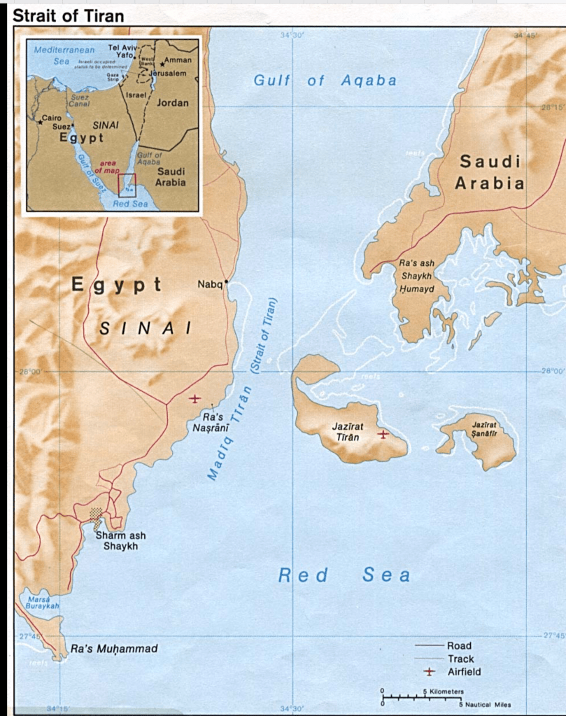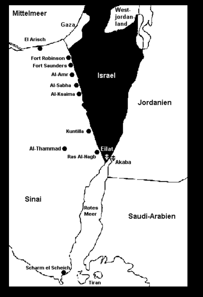 - aus der Schliessung der Strasse von Tiran, wodurch Eilat für Israel auf dem Wasserweg nicht mehr erreichbar war