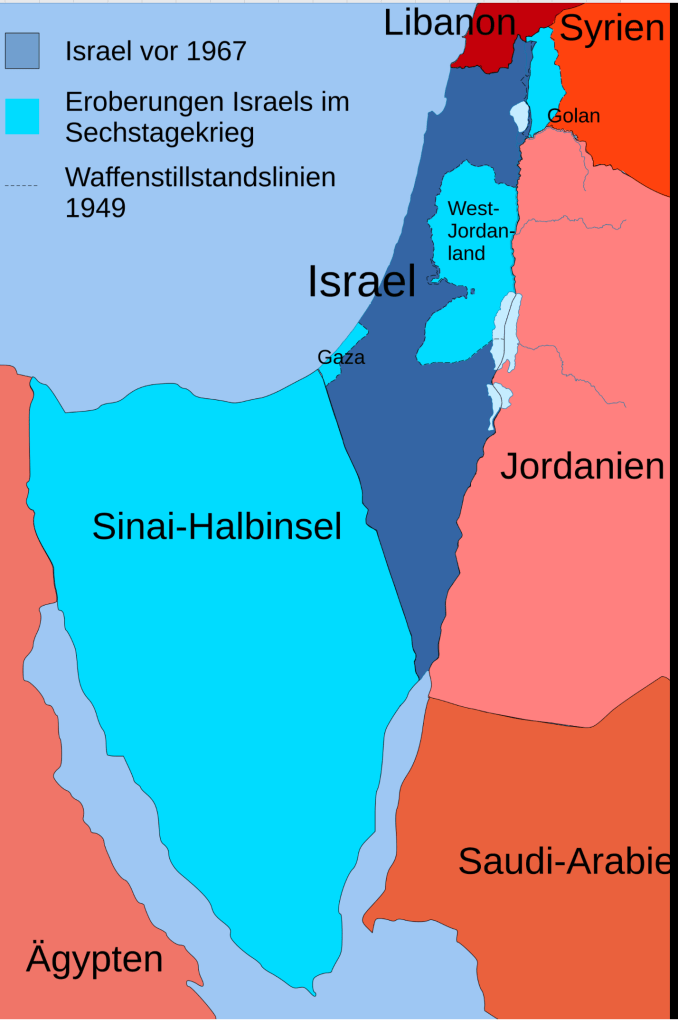 - Israel eroberte im Krieg gegen Ägypten, Jordanien und Syrien