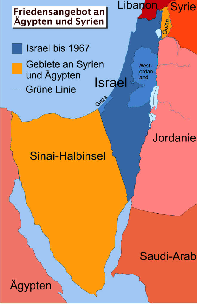 - Die Friedensangebote vom 19. Juni 1967 an Ägypten und Syrien wurden mit der Khartum-Resolution[1] vom 1. Sept. 1967 abgelehnt.