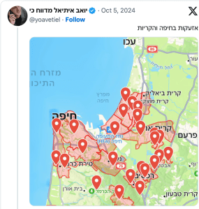 Am Freitagvormittag wurde der Raketenalarm in der gesamten Region zwischen Yokneam, Zichron Ya’akov, Haifa und Caesarea ausgelöst, nachdem einige Raketen in Richtung Haifa abgeschossen worden waren. Beide konnten abgefangen werden, ohne dass ein Schaden entstand. Kanal 12 berichtete, dass mindestens zehn Raketen abgefangen wurden.