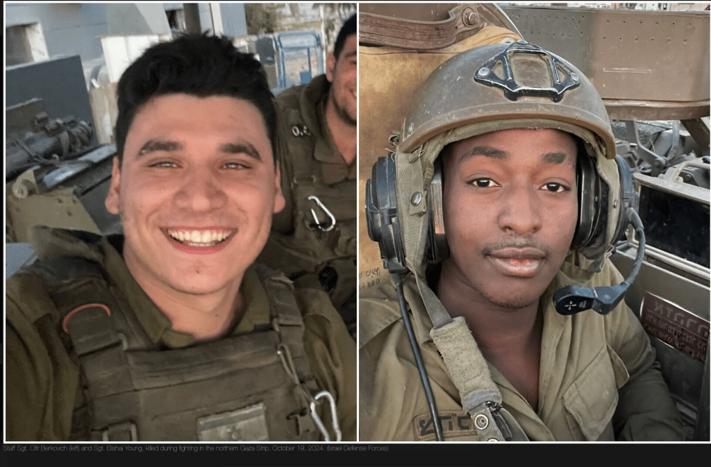 Erneut musste die IDF leider den Tod von vier Soldaten bekannt geben. Sgt. Maj. (res.) Yishai Netanel Greenbaum, 38, s’’l, wurde am 9. Oktober bei einem Kampf gegen die Hisbollah schwerst verwundet. Gestern verlor er den Kampf um sein Leben. Staff Sgt. Ofir Berkovitch, 20, und Sgt. Elishai Young, 19, s’’l, verloren ihr Leben bei einem Kampf im nördlichen Gazastreifen. Col. Eshan Daqsa, 41, s’’l, verlor sein Leben heute, als sein Panzer in der Nähe von Jabaliya von Sprengkörpern getroffen wurde.
