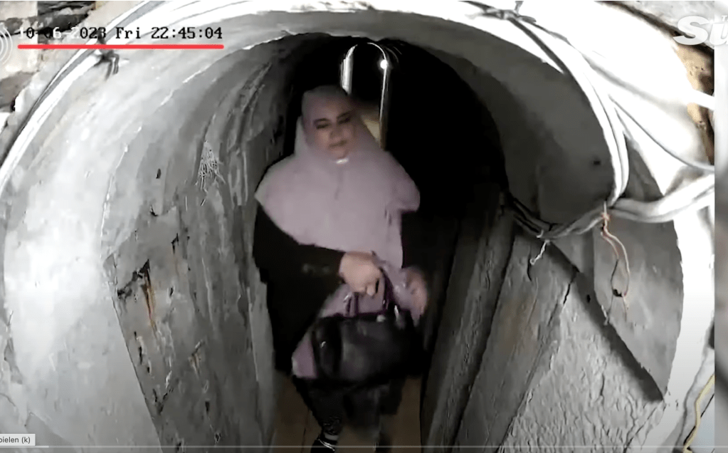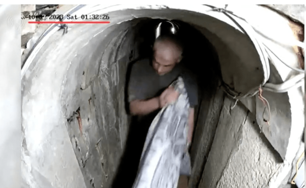 Klar zu erkennen sind Sinwar, seine Kinder und seine Frau, wie sie sackweise Material in einen Tunnel schleppen, um sich dort für einen längeren Aufenthalt einzurichten. IDF-Sprecher Daniel Hagari, der das Material bei einer Pressekonferenz vorstellte erklärte: «Sogar nur Stunden vor dem Massaker war ihm allein sein Überleben und das seiner Familie wichtig.» Der Tunnel befand sich in unmittelbarer Nähe von jenem Ort, an dem die IDF im August sechs kurz zuvor ermordete Geiseln bergen musste.