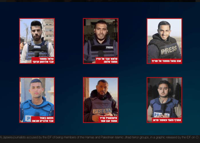 Sechs Journalisten von al-Jazeera wurden von der IDF als Mitglieder der palästinensischen Terror-Organisation Hamas und des Palästinensisch-Islamischen Djihad identifiziert. Eindeutig. Die sechs waren, das geht aus in Gaza aufgefundenen Dokumenten hervor, nicht ‘einfache’ Terroristen, nein, sie waren Chef einer Raketen-Abschuss Gruppe, stv. Chef einer Propaganda-Gruppe, Scharfschützen, Kommandant einer Trainings-Einheit…