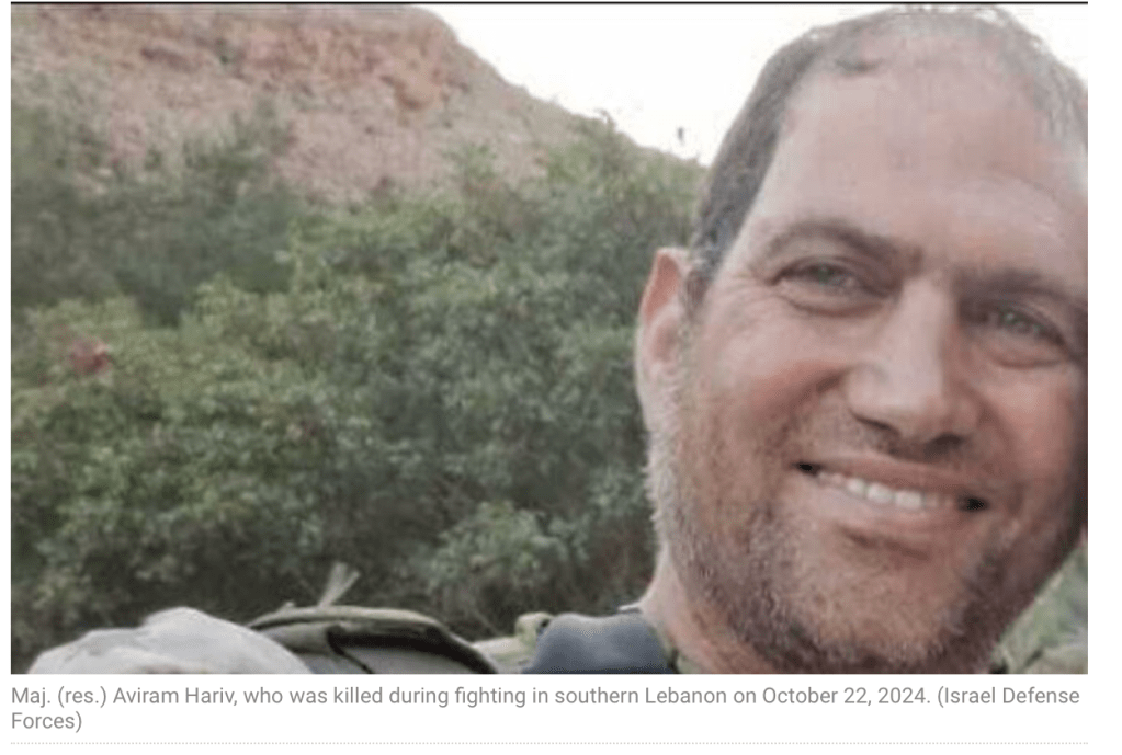Erneut muss die IDF leider den Tod eines Soldaten bekannt geben. Gestern verlor Maj. (res.) Aviram Hariv, 42, s’’l, sein Leben bei einem Kampf im südlichen Libanon.