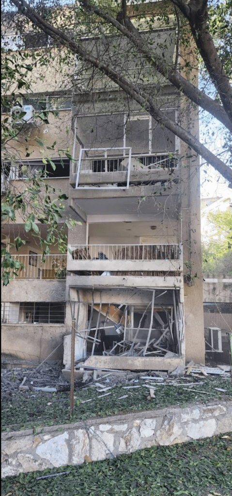 Mindestens vier Personen wurden in Klil, einem Bio-Dorf in der Nähe von Nahariya von herabstürzenden Schrapnells getroffen und verletzt, die von einer abgefangenen Rakete stammen. Eine Salve von mehr als 50 Raketen war zuvor vom Libanon auf Israel abgeschossen worden. Einige konnten abgefangen werden, andere stürzten auf israelischem Gebiet ab. Eine der Raketen traf direkt auf ein Haus im Moshav Netiv Hashayara in der Nähe von Nahariya. Bilder zeigen einen tiefen Krater und starke Schäden am Haus.