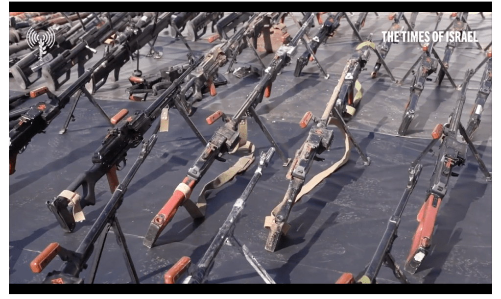Die IDF stellte die im Laufe des vergangenen Monats sichergestellten Waffen der Hisbollah aus. Darunter befinden sich 3.200 Sprengsätze, 2.500 Anti-Panzer-Raketen und Granatwerfer. IDF-Sprecher Daniel Hagar erklärt, dass allein im letzten Monat mehr als 3.200 Ziele der Hisbollah angegriffen und zerstört wurden, u.a. auch 350 Waffenlager.