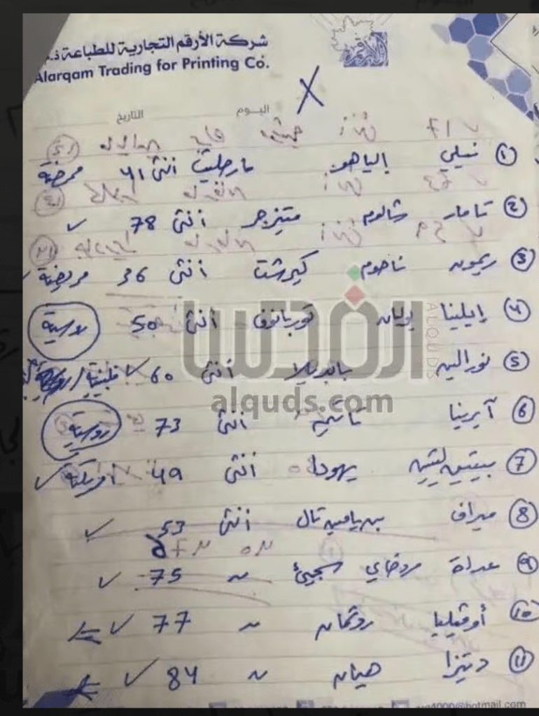 Das palästinensische Nachrichten-Magazin ‘Al-Quds’ veröffentlichte drei, angeblich von Sinwar handschriftlich verfasste Dokumente mit Anweisungen für die Geiselnehmer. Das erste umfasst die Verpflichtung, «sich um ihr Leben zu kümmern und es zu schützen. Sie sind ein wichtiges Druckmittel, um unsere Gefangenen freizubekommen.» Das zweite umfasst die Aufenthaltsorte von 112 namenlosen Geiseln. Dabei werden in Gaza-Stadt 14, im Zentrum 25, in Rafah 51 und 22 andere ohne Ortsangabe genannt. Die Geiseln werden nach ihrem Alter, d.h. über oder unter 60 oder ‘jung’, ihrem Geschlecht und ob sie ‘Zivilisten’ oder ‘Soldaten’ sind, eingeteilt. Auch von einer beduinischen Geisel in Gaza-Stadt und vier weiteren in Rafa ist die Rede. Das dritte Dokument enthält eine Liste von elf weiblichen Geiseln, die im November freigelassen wurden. Sie sind mit Namen, Alter und Staatsbürgerschaft aufgeführt.