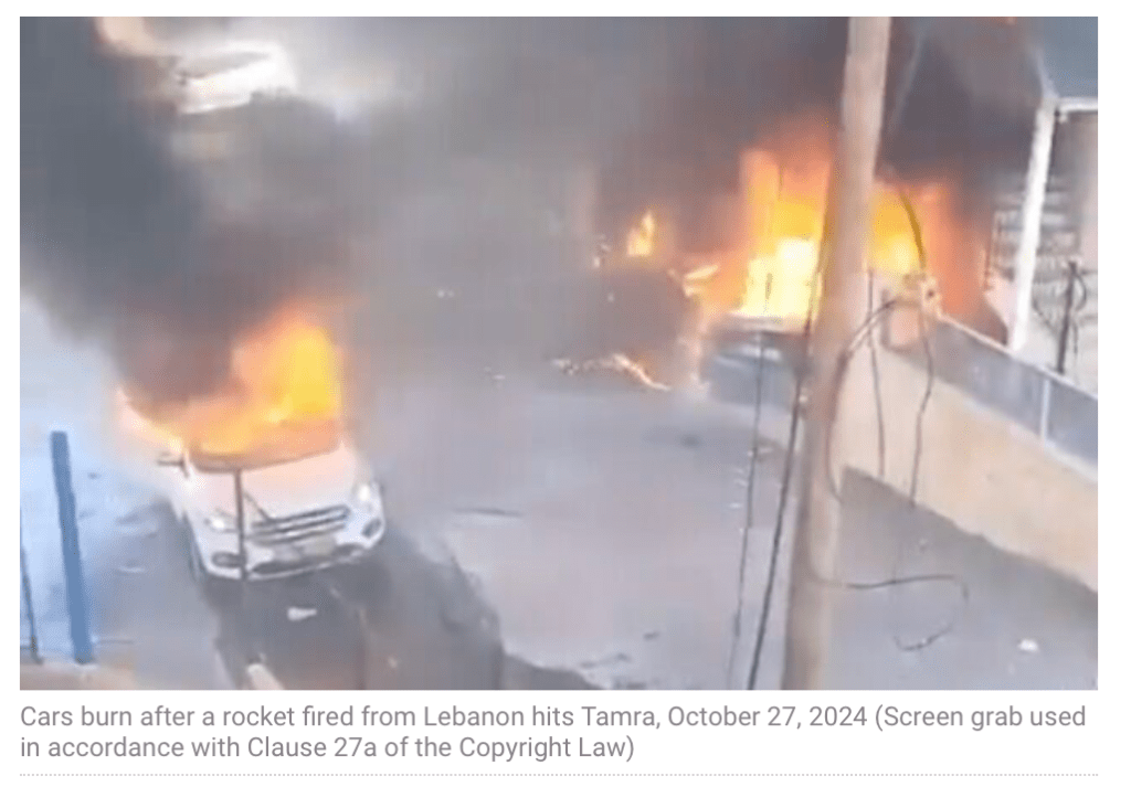Eine Salve von 75 Raketen wurde vom Libanon nach Israel abgeschossen. Die meisten von ihnen konnten abgefangen werden, andere verursachten Schäden. In der israelisch-arabischen Stadt Tamra im Norden Israels gingen mehrere PKWs in Flammen auf. Mehrere Gebäude wurden beschädigt. Drei Personen wurden leicht verletzt.