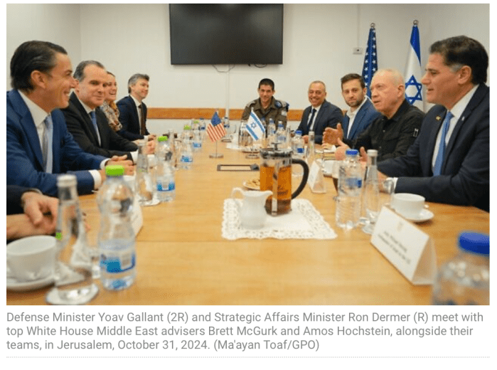 Eine hochrangige US-amerikanische Delegation befindet sich derzeit zu Besuch in Israel. VM Yoav Gallant und Strategie Minister Ron Dermer trafen sich am Nachmittag mit den führenden Nah-Ost-Beratern des Weissen Hauses, Brett McGurk und Amos Hochstein. Die Themen der Beratungen waren die Sicherheitslage im Libanon und im Norden Israels sowie die Bemühungen, die Rückkehr der 101 Geiseln zu erreichen. Der US-Botschafter in Israel, Jack Lew, und der israelische Botschafter in Washington, Michael Herzog, nahmen ebenso am Treffen teil, wie leitende Mitarbeiter des VM.