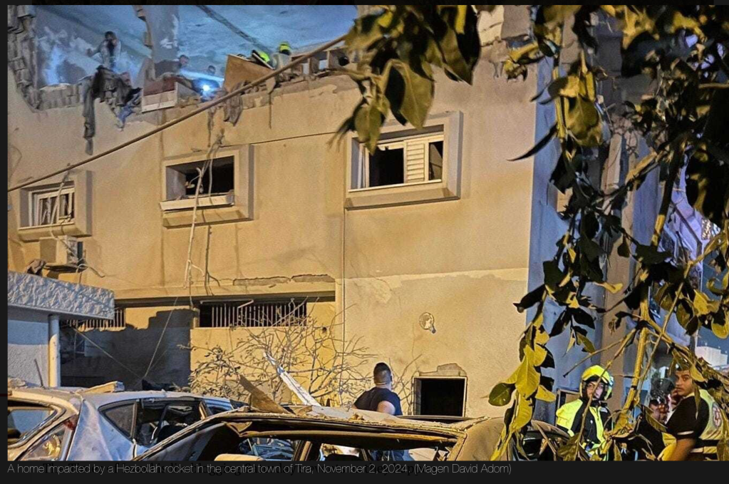 In der israelisch-arabischen Stadt Tira, zwölf Kilometer süd-östlich von Netanya traf in den Nachtstunden eine Rakete ein Mehrfamilienhaus und richtete erheblichen Schaden an. Magen David Adom berichtete, dass 19 Personen verletzt wurden und weitere sieben mit Schock- und Angstsymptomen betreut werden mussten.