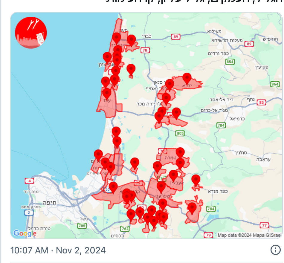 Am späten Nachmittag gab es den dritten Alarm für die Region von Akko bis nach Netanya inklusive des entsprechenden Hinterlandes. Insgesamt dauerte der Alarm mehr als eine halbe Stunde.