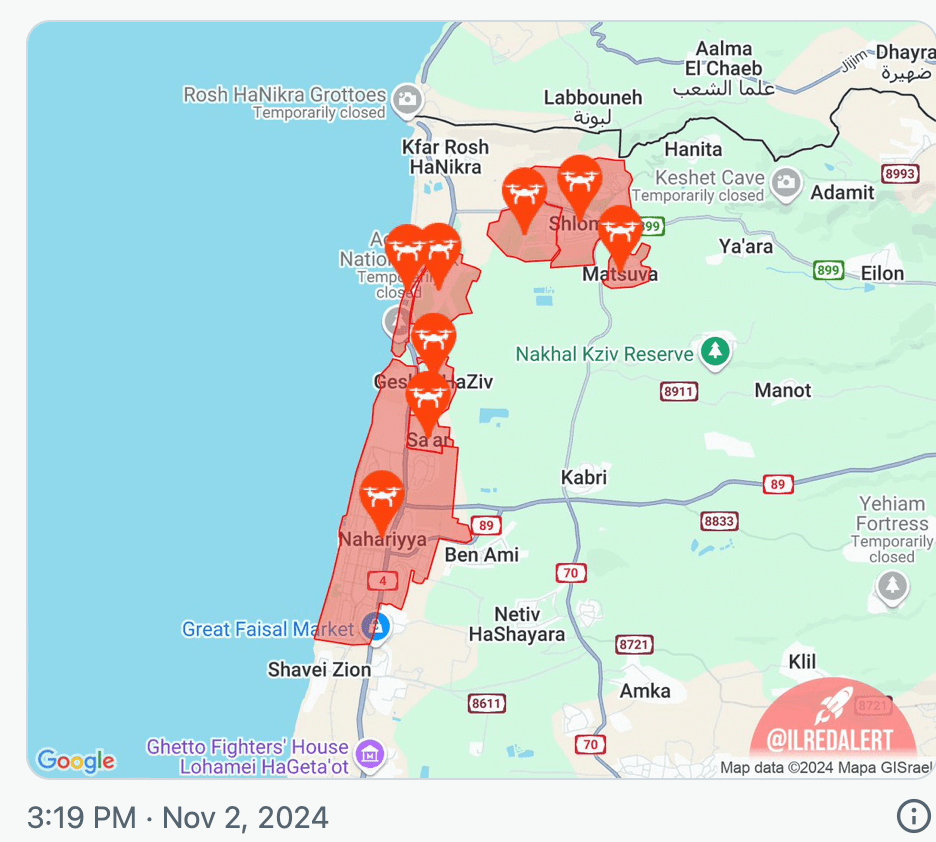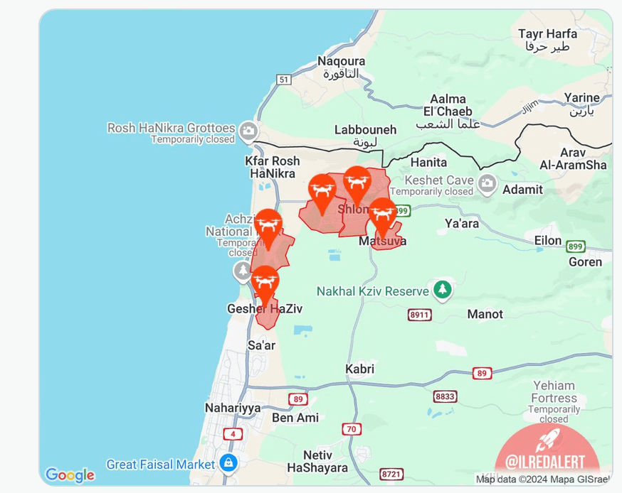 Erneut wurde eine Fabrik in der Nähe von Nahariya von einer Drohne getroffen. Eine zweite wurde von der IAF abgefangen. Am Fabrikgebäude entstand massiver Sachschaden.
