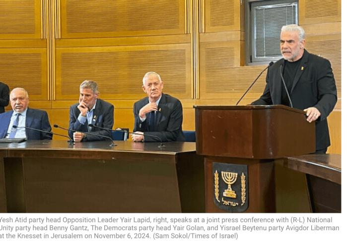 Die Vorsitzenden der vier Oppositions-Parteien äusserten sich in einer gemeinsamen Pressekonferenz wie erwartet äusserst kritisch gegenüber der Entlassung von VM Yoav Gallant. Der Likud wehrte sich gegen die Vorwürfe, ohne auf Details einzugehen. «Wenn die Linke, angeführt von Yair Golan, Yair Lapid und Benny Gantz, zusammen mit Avigdor Liberman an Gallants Seite steht, sagt das alles.» In einem völlig ungerechtfertigten Rundumschlag fuhr der Sprecher fort: «Vor nur zwei Jahren haben die vier zusammen mit der Muslimbruderschafts-Partei Ra’am eine Regierung gebildet und ein Kapitulationsabkommen mit der Hisbollah geschlossen – und sie wagen es immer noch, über Sicherheit zu sprechen? Noch vor wenigen Monaten hat sich Liberman über Gallant lustig gemacht und gesagt: „Wir haben keinen Verteidigungsminister, wir haben einen Bedrohungsminister.“ Und vor zwei Monaten erklärte Gantz, dass Gallant zurücktreten müsse», fährt der Sprecher fort.» Premierminister Netanyahu wird Israel zusammen mit dem neuen Verteidigungsminister Israel Katz zum absoluten Sieg führen. Sie werden sich weiterhin beschweren, und wir werden weiterhin gewinnen.»