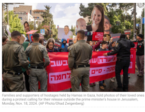 Familienangehörigen und Freunde der noch in Gaza festgehaltenen Geiseln demonstrierten gestern erneut vor dem Wohnhaus von Netanyahu in Jerusalem. In Israel steht der Winter mit Regen und Kälte bevor. Die Familienangehörigen betonten, dass die Geiseln einen zweiten Winter ‘in den eiskalten Tunnels von Gaza’ nicht überleben werden. «Während Netanyahu und sein Team damit beschäftigt sind, die öffentliche Meinung zu manipulieren, sterben 101 Geiseln unter dramatischen Bedingungen.»