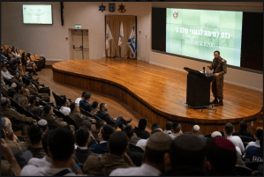 Die IDF hielt gestern Abend eine Konferenz für Mitglieder der haredischen Gemeinschaft, die als Reservisten in der neuen Haredi-Brigade, die Hasmonäische[1] Brigade, eingezogen werden sollen, ab. Innerhalb dieser Brigade soll eine Reservekompanie aufgestellt werden. Diese wird zunächst ältere Personen umfassen, die eine zweiwöchige Grundausbildung durchlaufen haben und dann in nicht-kämpfenden Funktionen eingesetzt werden. Die Reservisten werden eine sechs-monatige Kampf-Trainings-Phase durchlaufen, bevor sie in die eigentliche Reservekompanie versetzt werden.