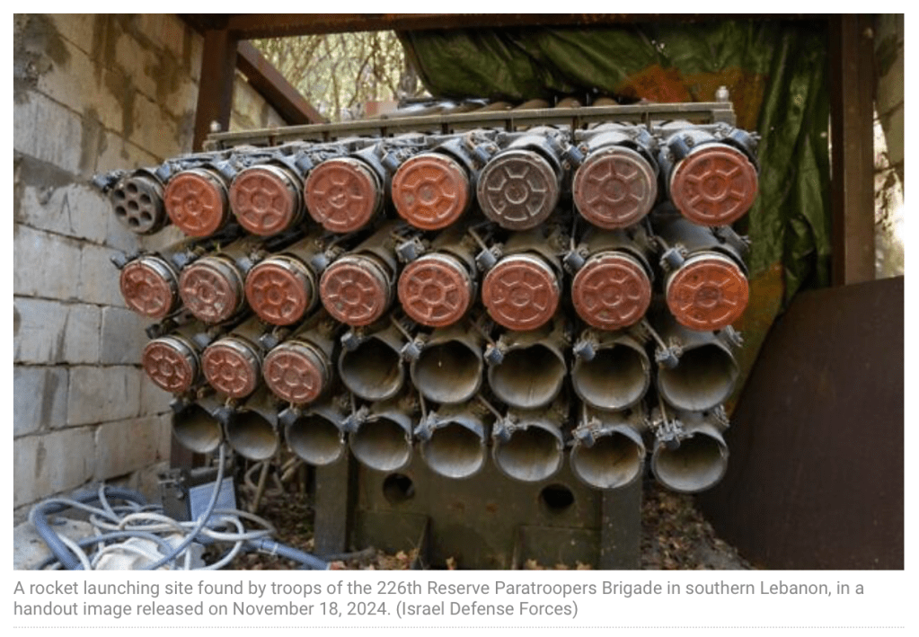Die IDF entdeckte im südlichen Libanon erneut zahlreiche Raketenwerfer und Raketenabschuss-Basen, die teilweise in Häusern und teilweise im waldigen Gelände versteckt waren. Einige waren schon für den Abschuss auf den Norden Israels vorbereitet. Auch ein Tunnel, dessen Zugang im bergigen Gelände gut versteckt war, wurde entdeckt. Innerhalb des Tunnels gab es Waffenlager, Ausrüstungsgegenstände und Lebensmittel.