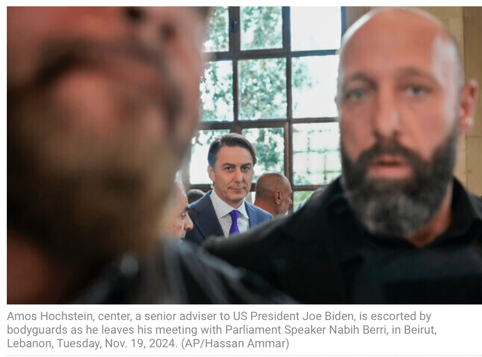 Der US-Sondergesandte Amos Hochstein wird seinen Besuch in Israel verschieben und länger in Beirut bleiben. Offensichtlich sind die Chancen für einen Waffenstillstand so hoch, dass er diese nutzen will. Bevor er morgen nach Israel kommen wird, möchte er alle Vereinbarungen auf der libanesischen Seite fixieren.