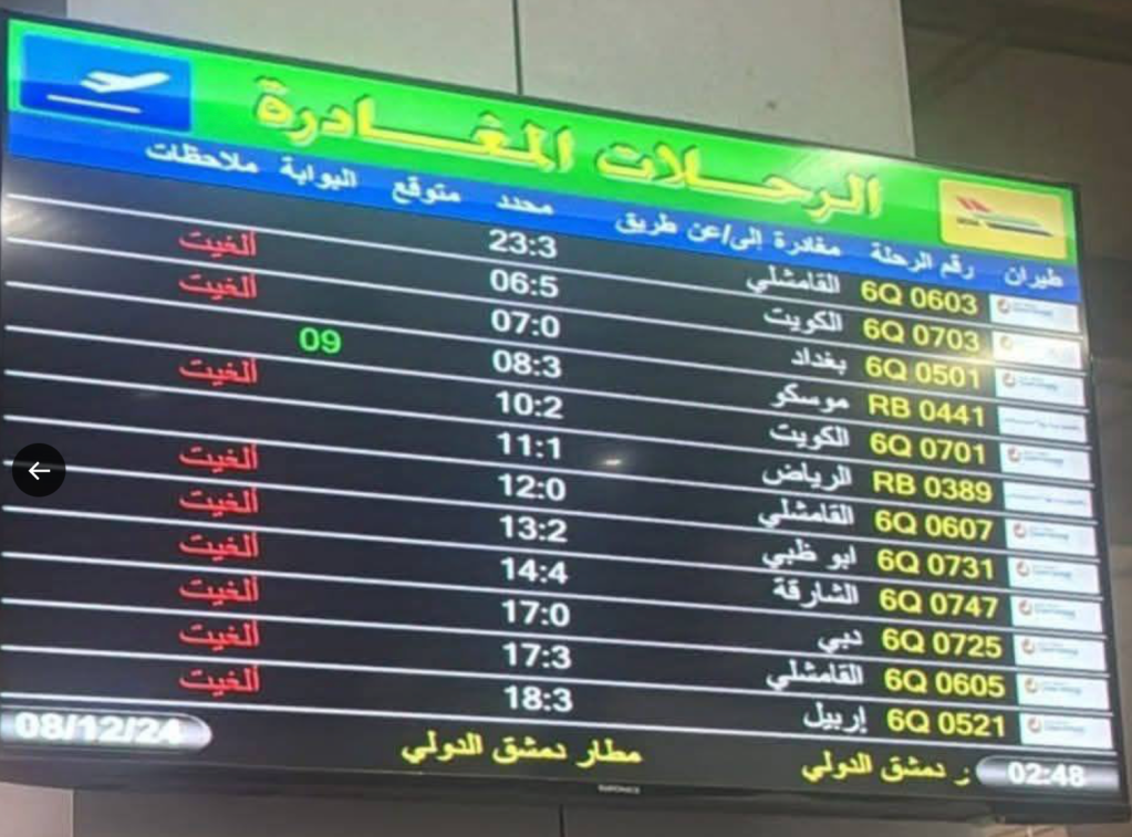 Ob sich Assad tatsächlich an Bord der einzigen Maschine befand, die heute am Vormittag von Damaskus aus abflog, ist noch nicht bestätigt. Unbestätigt ist auch das Schicksal des Flugzeuges selbst. Die Maschine hob zeitgleich mit der Eroberung von Damaskus vom Flughafen ab, flog dann zunächst Richtung Küste. Dann aber machte sie einen scharfen Kurswechsel und flog Richtung Homs, wo sie vom Radar verschwand. Als Zielort des Fluges war Moskau angeführt. Allerdings wurde bekannt, dass etwa zur gleichen Zeit eine Frachtmaschine vom Militärflughafen Latakia abflog….