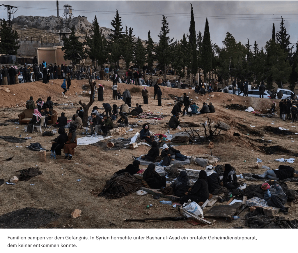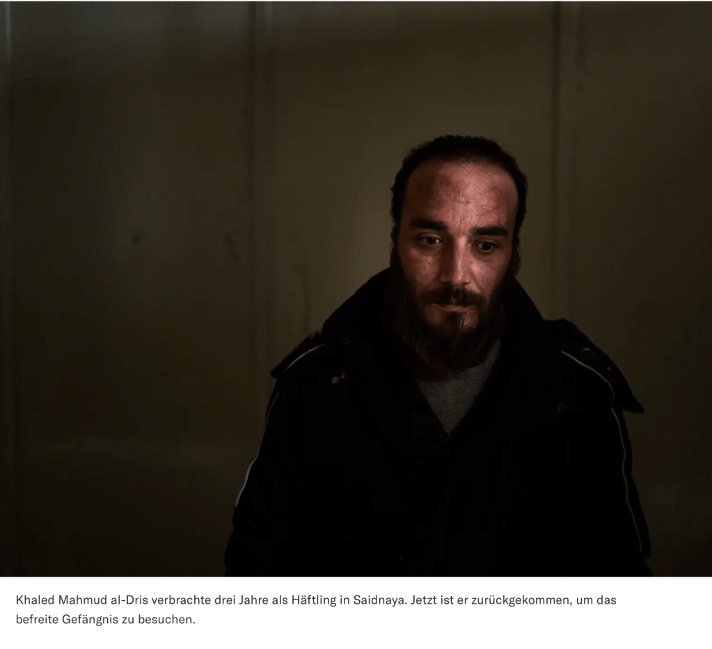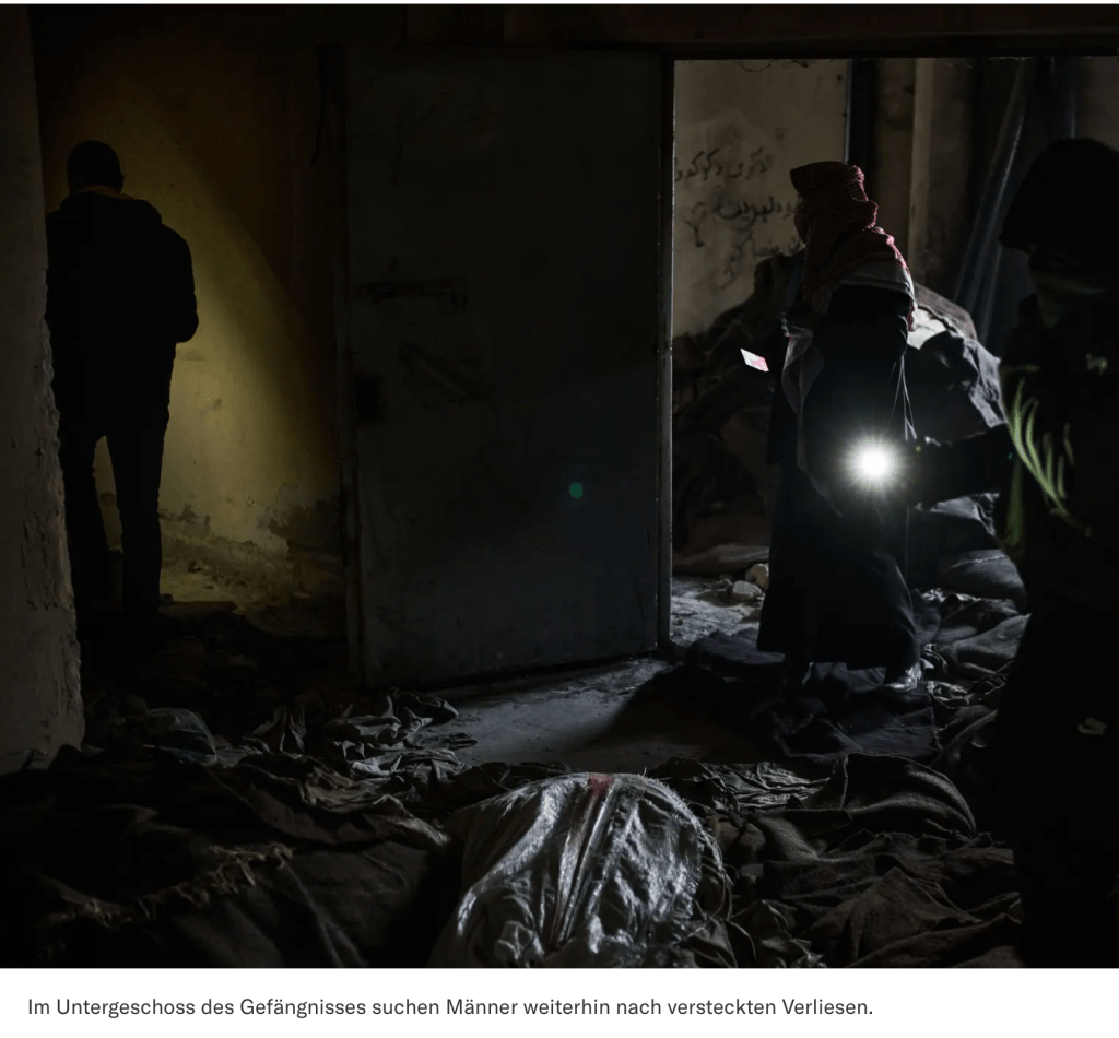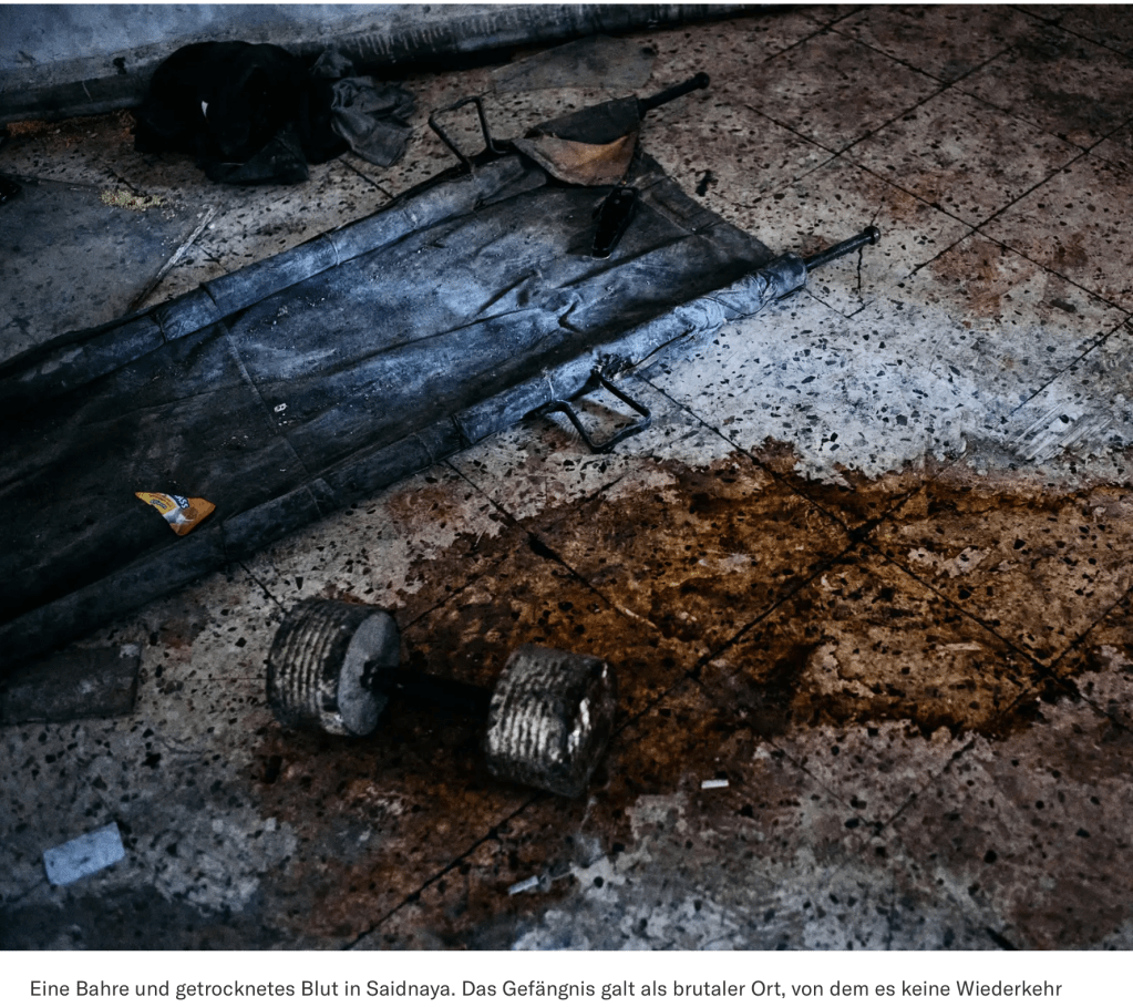 Das Schlachthaus von Assad – das Saidnaya Gefängnis in Damaskus. Es gibt keine Beschreibung, die auf dieses Haus zutreffen würde. Zehntausende Menschen sind während des Assad-Regimes dort verschwunden. Ohne einen Gerichtsbeschluss, ohne ein Urteil. Manchmal nur deshalb, weil jemand den gleichen Familiennamen trug, wie ein gesuchter Abweichler. Es war eine der ersten Taten der Rebellen, dass sie die Gefängnisse öffneten. Hunderte, tausende Menschen sind seither auf das Gelände des Gefängnisses gekommen, in der Hoffnung, etwas über diejenigen zu hören, die seit Jahren wie von der Erde verschluckt sind. Einige sind es tatsächlich. Angeblich sind alle noch lebenden Gefangenen gefunden und freigelassen worden. Doch noch immer suchen Hilfstrupps nach verborgenen Verliessen, tief unter dem Boden in Tunnels und Röhren, teilweise gesichert mit Codes, die unbekannt sind. Türen müssen aufgebrochen und Bodenplatten aufgebohrt werden. Manch einer, dem es gelang, freizukommen, weil die Familie hohe Bestechungsgelder gezahlt hat, kommt zurück, um die Geschichte für die Nachkommen zu dokumentieren.