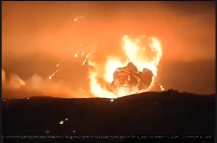Das syrische Beobachtungszentrum für Menschenrechte (SOHR), mit Sitz in London, berichtet, dass in der vergangenen Nacht Israel die heftigsten Angriffe auf syrisches Gebiet seit mehr als zehn Jahren geflogen habe. Ziel der Angriffe seien Luftverteidigungs-Stellungen und Lager für ‘Boden-Boden-Raketen’ in der Nähe von Tartus an der Mittelmeerküste gewesen. Bilder in den sozialen Medien zeigen eine grosse Explosion. SOHR wird nur von einer einzelnen Person geführt und wurde in der Vergangenheit immer wieder von Syrien der falschen Berichterstattung beschuldigt.