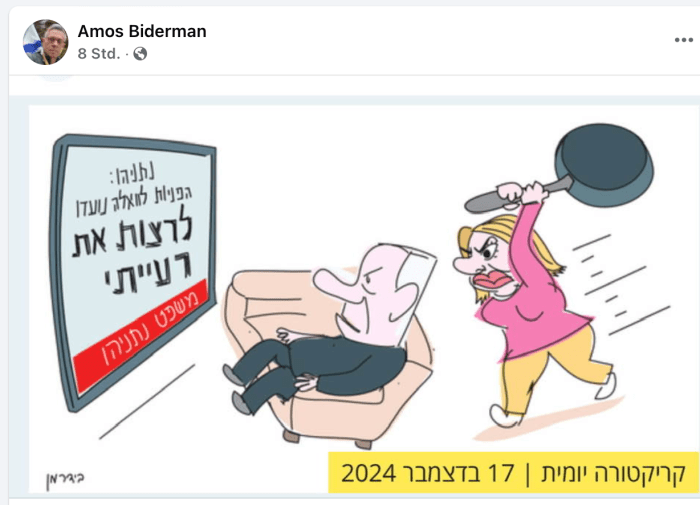 Fast könnte er unser Mitleid verdienen. Noch nicht einmal ein ‘aufmerksames’ Ohr für seine Frau Sara hat Netanyahu im Laufe des Tages. Wenn sie sich spät am Abend für wenige Minuten treffen, so sprechen sie ‘über die Kinder und die Familie’ (s. Bericht vom 10. Dez.) «Es gibt keine Möglichkeit, alle Ereignisse des Tages durchzugehen, das gibt es nicht», fährt er fort und besteht darauf, dass er nicht an den Nachrichten beteiligt war, die Sara Ze’ev Rubinstein zukommen liess, «Ich hatte nichts damit zu tun, nicht einen Finger, nicht einen Fingernagel, weil ich sehr, sehr beschäftigt war.» Netanyahu versteifte sich in seiner Aussage darauf, den Unterschied zwischen einer ‘Bitte’ und einer ‘Forderung’ zu klären. So habe Sara ihren Freund Ze’ev Rubinstein (s. Bericht vom 12.12.) darum ‘gebeten’, einen positiven Bericht über sie in Walla platzieren zu lassen. Von ‘fordern’, wie es in der Anklageschrift stehe, sei keine Rede. Jetzt zeigt er sich aber als Tüpflischisser wie aus dem Bilderbuch!