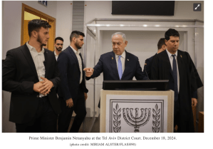 Netanyahu ist zum vierten Tag seiner Befragung in Tel Aviv angekommen. Der gestrige Tag wurde abgesagt, um ihm den PR-trächtigen, aber ansonsten völlig überflüssigen Besuch auf dem neuen Militärstützpunkt auf der syrischen Seite des Hermons zu ermöglichen. Das Gericht gab an, es habe dem Besuch auf dem Hermon aus ‘diplomatischen und sicherheitspolitischen Erwägungen’ zugestimmt.
