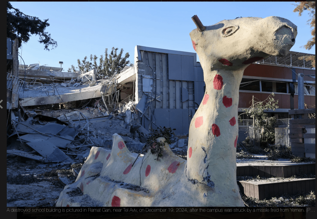 Während die erste Welle der Angriffsflüge sich bereits auf dem Weg Richtung Jemen befand, schossen die Houthis eine auf Zentralisrael gerichtete ballistische Rakete ab. Erste Untersuchungen ergaben, dass die massiven Schäden an einer Schule in Ramat Gan von Teilen des Raketensprengkopfes verursacht wurden. Offenbar war die Rakete nicht zur Gänze abgefangen und zerstört worden. Beim Einschlag in das gottseidank noch leerstehende Schulgebäude explodierte er und brachte das Gebäude zum Einsturz. Auch in der Nähe der Schule geparkte Fahrzeuge erlitten schwere Schäden.