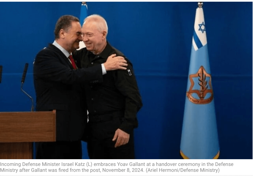 Er entliess den fähigsten, loyalsten Politiker der aktuellen Regierung. Gallant ging mit Würde und Anstand und verabschiedete sich von seinem Nachfolger Israel Katz so, wie man sich es wünscht.