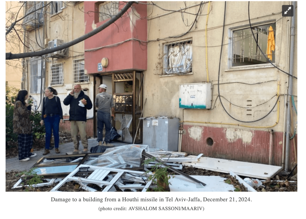 In der Nacht von gestern auf heute haben die Houthi-Terroristen erneut eine ballistische Rakete auf Zentral-Israel abgeschossen. Mehrere Versuche, sie mit dem Arrow Abwehr-System und anderen Systemen abzufangen, schlugen fehl. Die Rakete schlug schliesslich auf einem Kinderspielplatz in einem Park in Tel Aviv ein. Einige in der Nachbarschaft gelegene Häuser erlitten Schäden und mussten evakuiert werden. 23 Personen, darunter zahlreiche Kinder, wurden leicht verletzt. Die IDF untersucht, warum keiner der Abfangversuche Erfolg hatte.