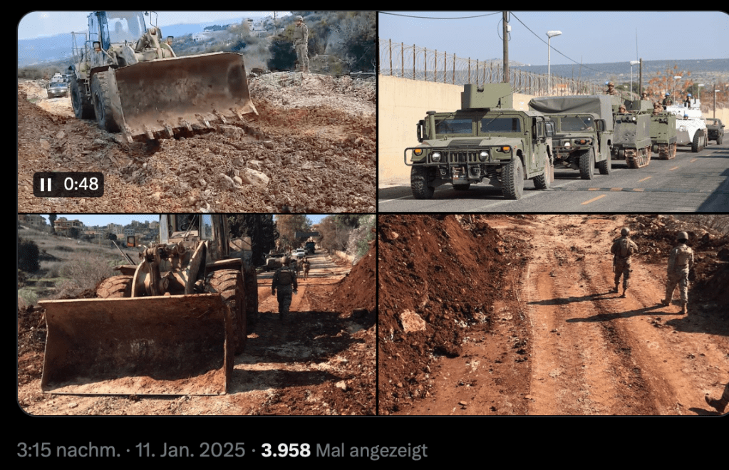 Das libanesische Militär gab bekannt, dass sie nach Abzug der israelischen Truppen aus dem westlichen Sektor des südlichen Libanon dort Stellung bezogen haben. Damit haben sie mit der Umsetzung des Waffenstillstandsabkommens begonnen. Sie haben damit begonnen, Truppenverbände in den Grenzstädten zu positionieren. Die Zivilbevölkerung wird davor gewarnt, in diese Regionen zu kommen, bevor die Orte vom Militär kontrolliert und von nicht explodierten Sprengkörpern gereinigt wurde.