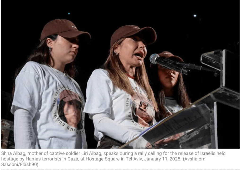 Bei der wöchentlichen Demonstration auf dem ‘Platz der Geiseln’ in Tel Aviv sprach Shira Albag, die Mutter von Liri Albag, klare Worte, die sie an Netanyahu und VM Israel Katz richtete: «Das Video, das die Hamas letzte Woche von Liri veröffentlichte, ist ein Beweis für Ihr anhaltendes Versagen. Haben Sie das Video gesehen? Haben Sie danach gut geschlafen?» Die Liri, die sie im Video sahen, sei nicht die Liri, die sie kennen. «Sehen Sie sich ihre Augen an. Augen, die wir so gut kennen. Augen, die aus ihrem Inneren herausschreien: ‚Holt mich aus der Hölle raus. Vergesst mich nicht‘.» Auch die Schuld am Tod von Youssef und Hamza Ziyadne, deren sterbliche Überreste vor einigen Tagen geborgen wurden, gibt sie Netanyahu: «Vater und der Sohn haben die Tiefen der Hölle überlebt und wurden ermordet, weil Sie nicht rechtzeitig die richtige Entscheidung getroffen haben. Die Verhandlungen über die Geiseln dürfen nicht ohne eine Einigung enden, um Liri und alle Geiseln nach Hause zu bringen. Sie haben die Macht, Sie haben die moralische Autorität.»