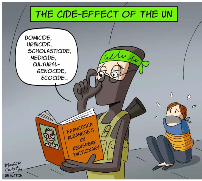 Der Kotzbrocken des Tages geht an: Francesca Albanese, eine UNO-Sonderberichterstatterin. Sie ist besessen von Israel und alles nutzt, um ihre unsäglichen antisemitischen Brandreden gegen Israel auszuspucken.