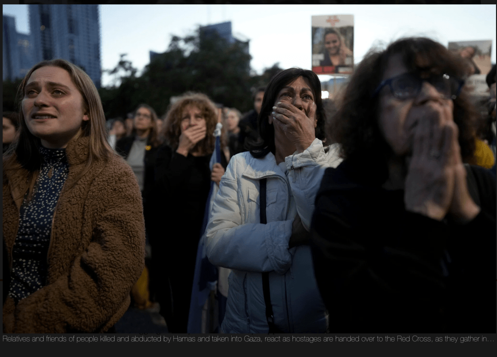 Nachdem der gestrige Tag verlief, ohne dass die von der Hamas zugesagte Liste der Geiseln eintraf, die heute freigelassen werden, wich die herrschende Euphorie erneuten Zweifeln. Der Waffenstillstand, der um 08:30 beginnen sollte, wurde auf zunächst unbestimmte Zeit verschoben. Dann gegen 10:30 das Aufatmen. Die Liste war da!