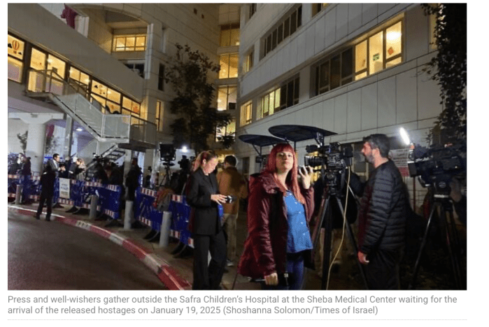 - Um kurz nach 17:30 wurden die ehemaligen Geiseln der IDF übergeben, auf dem Platz der Geiseln in Tel Aviv bricht nach der angespannten Ruhe unglaublicher Jubel aus!