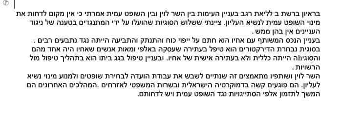 Prof. Shimon Shetreet hielt zum Wahlvorgang, den JM Levin unbedingt verhindern will, fest: «Minister Levin und seine Mitarbeiter bemühen sich seit zwei Jahren, die Arbeit des Richter-Wahl-Gremiums zu stören und die Ernennung eines Präsidenten für den OGH zu verhindern. Sie schaden der israelischen Demokratie und den juristischen Dienstleistungen für die Bürger schwer. Die neuesten Schritte sind eine Fortsetzung der Planung Tausender von Vorwürfen gegen Richter Amit und müssen aufgehoben werden.»