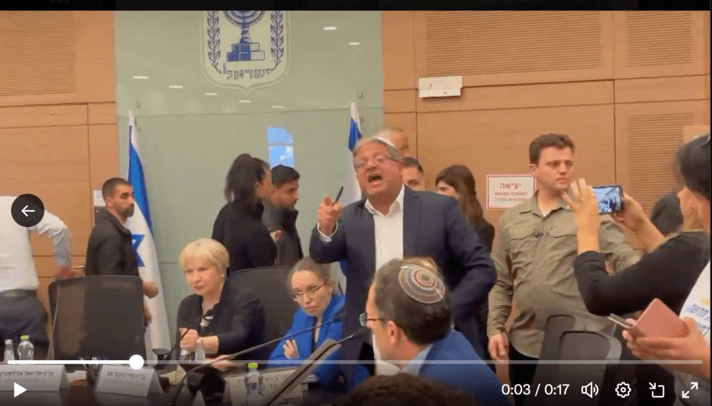 Der rechtsextrem-nationalistische Ben-Gvir stimmte gegen das Geiselabkommen und trat deshalb mit seinen sieben Mitstreitern aus der Regierung aus. Heute lieferte er sich ein Schreiduell mit Familienangehörigen von in Gaza festgehaltenen Geiseln im Ausschuss für auswärtige Angelegenheiten und Verteidigung. Diese warfen ihm vor, gegen das Abkommen gestimmt zu haben und ihre Liebsten im Stich gelassen zu haben, woraufhin er zurückbrüllte: «Wenn nur alle solche Prinzipien wie ich hätten», und verliess schimpfend den Raum.